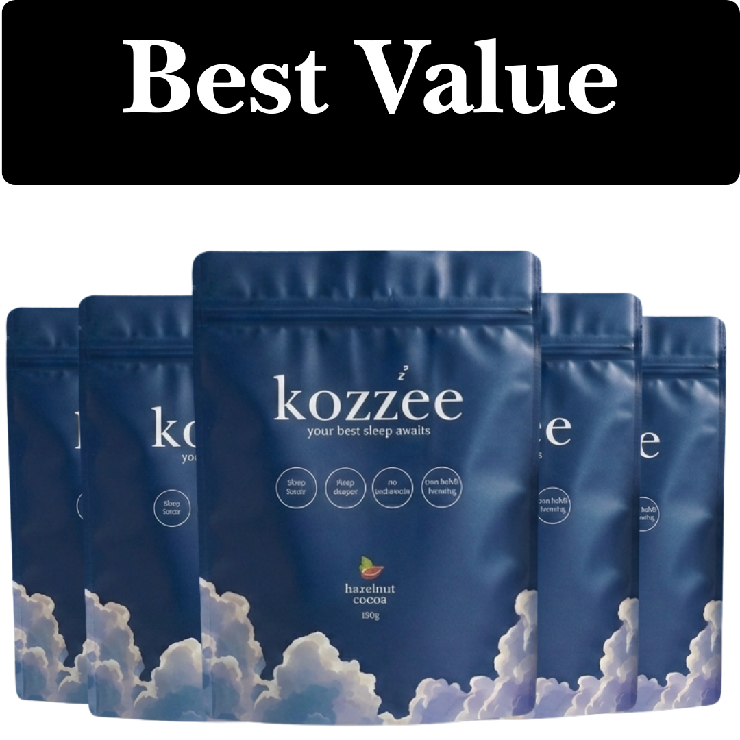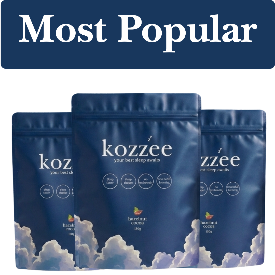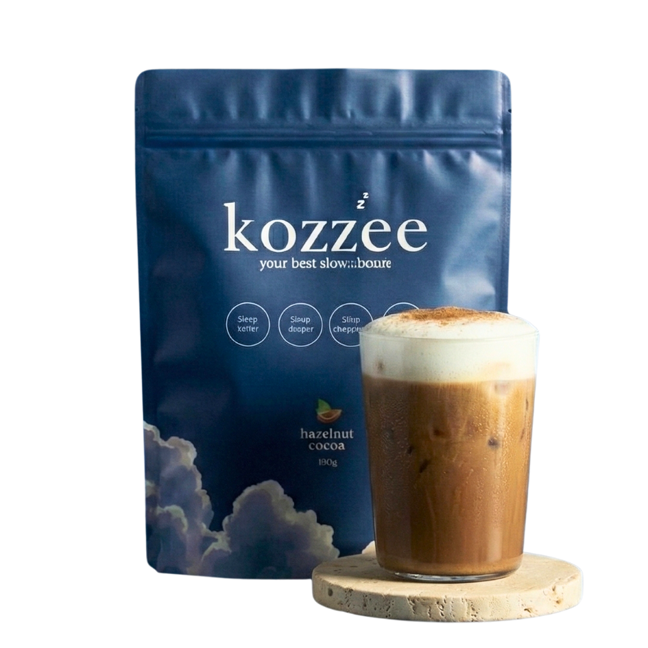 Fall asleep faster. Sleep deeper. Wake up refreshed. Kozzee combines magnesium with calming superfoods in a rich hazelnut-cocoa drink that melts away the day's tension and settles your mind for real rest. No added sugar, just 23 calories, and 30 servings per bag — because better sleep should be this easy (and this delicious).